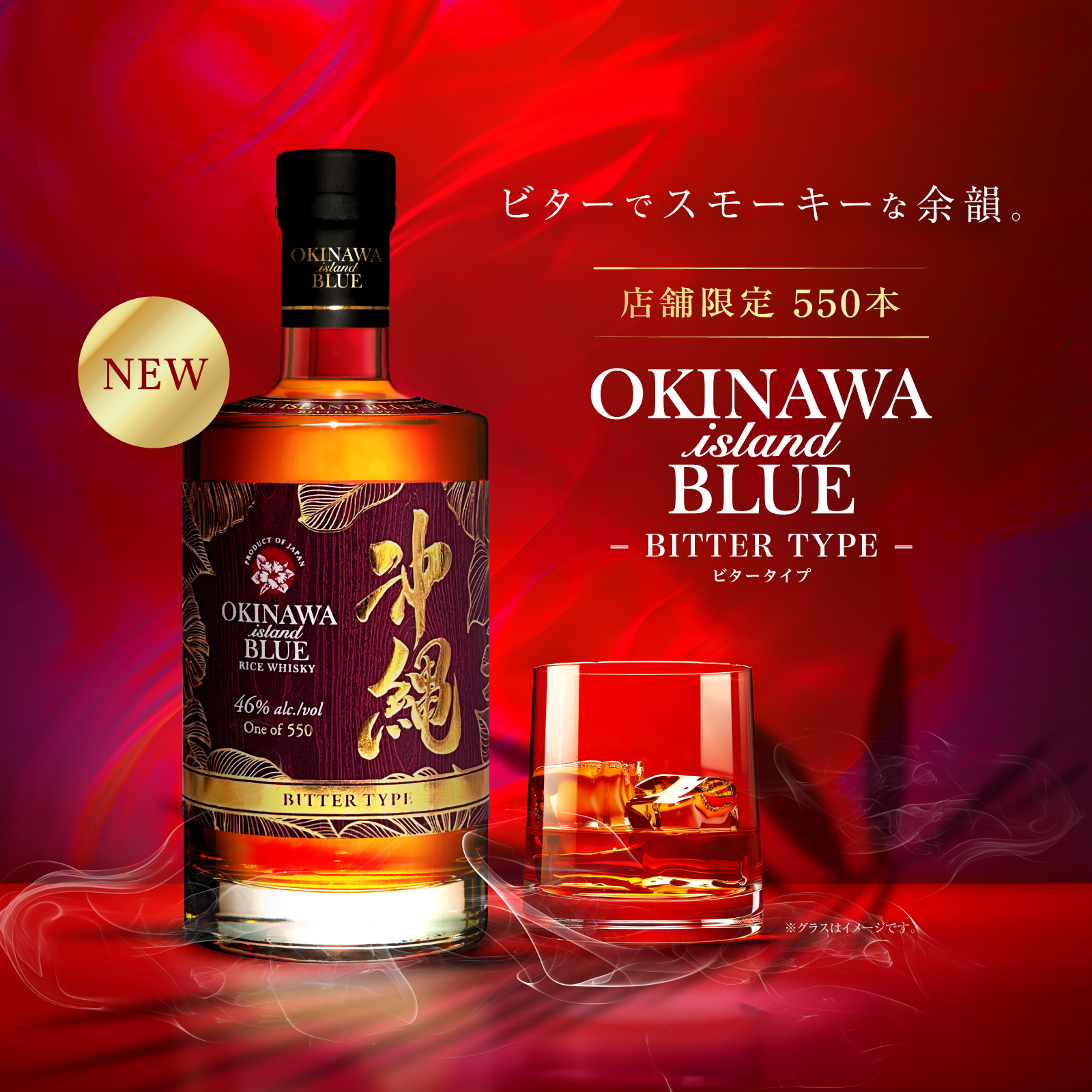 「OKINAWA ISLAND BLUE Bitter Type」は、店舗に足を運んでくださるお客様のために仕立てた、550本限定のウイスキーです。