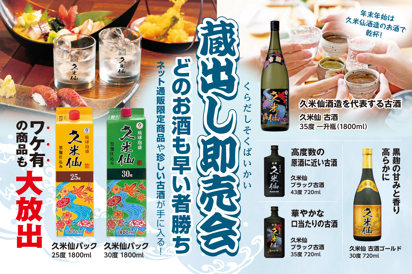 年末年始のまとめ買いの大チャンス!久米仙酒造 大特価!蔵出し即売会 in ファーマーズマーケットいとまん うまんちゅ広場!